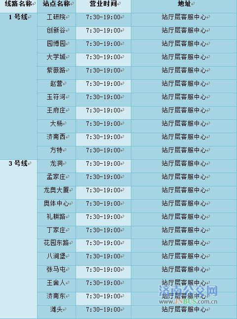 3.濟(jì)南地鐵電子車(chē)票發(fā)售處位置及營(yíng)業(yè)時(shí)間