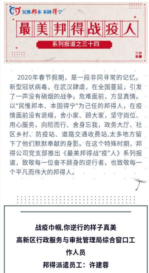 最美邦得戰(zhàn)“疫”人—— 系列報道之(三十四)