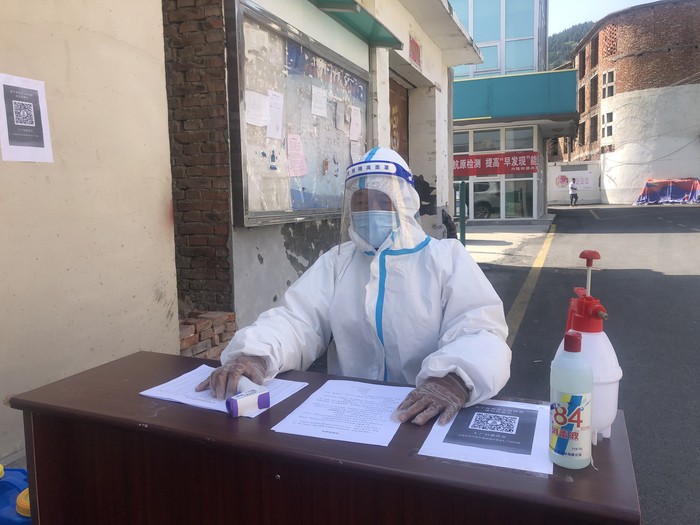 隨后,7個(gè)人會(huì)按照分工對(duì)居民樓消殺,為居家隔離的居民送所需物品,在居委會(huì)入口處登記查“碼”。近期,樂(lè)山小區(qū)社區(qū)進(jìn)行了兩次核酸檢測(cè),公益崗人員格外忙碌。除了現(xiàn)場(chǎng)維持秩序和登記測(cè)溫,他們還負(fù)責(zé)通知宣傳?!坝械睦夏耆藳](méi)有微信,接不到線上通知,我們就會(huì)挨家挨戶上門(mén)通知?!标惾镎f(shuō)。